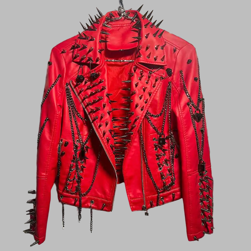 Červená punková bunda s cvočky a řetězy Zobrazit moznosti