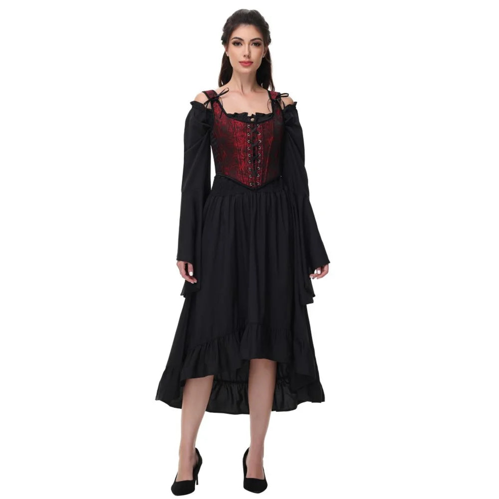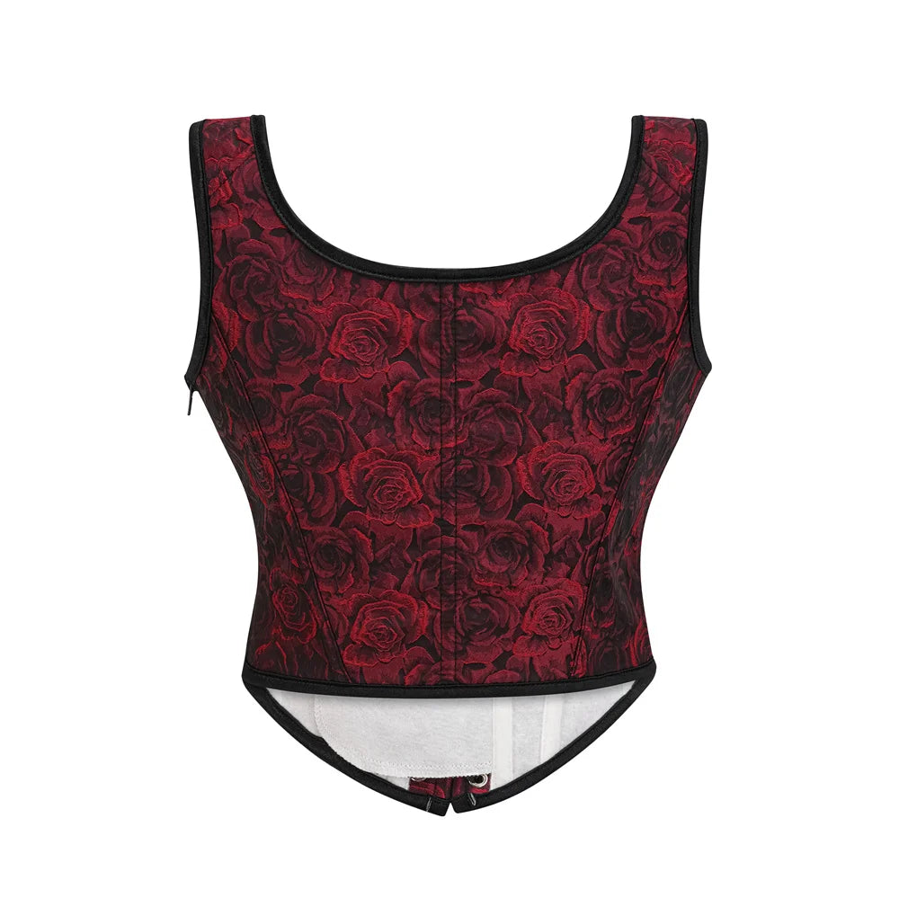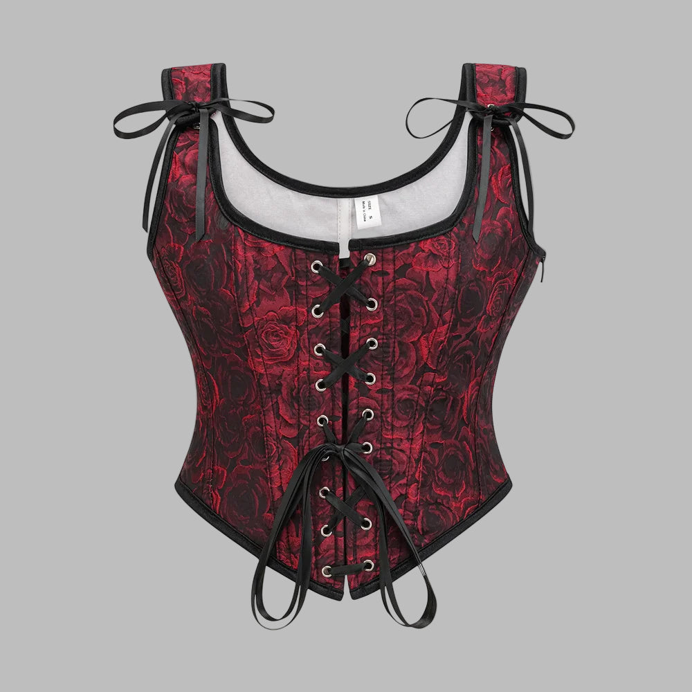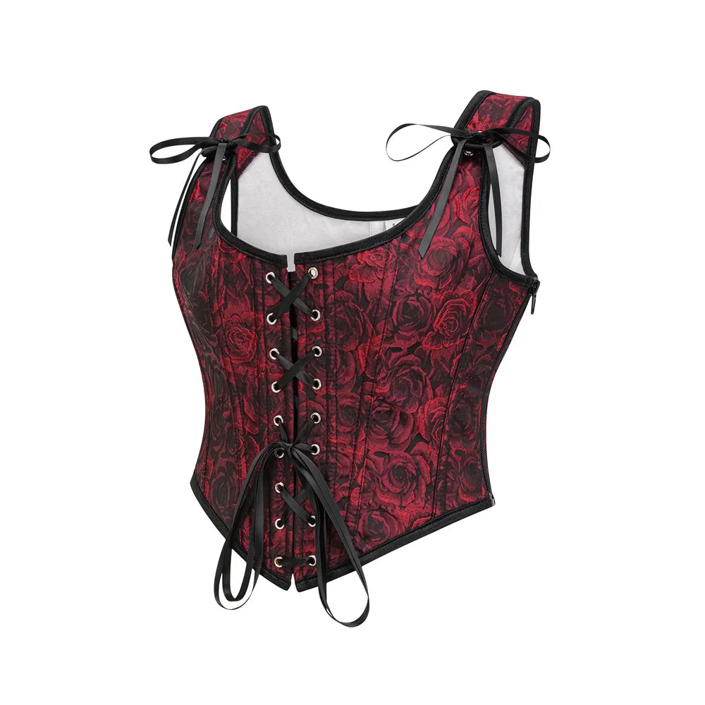 Červeno-černý gotický korzet s růžemi a ramínky Zobrazit moznosti