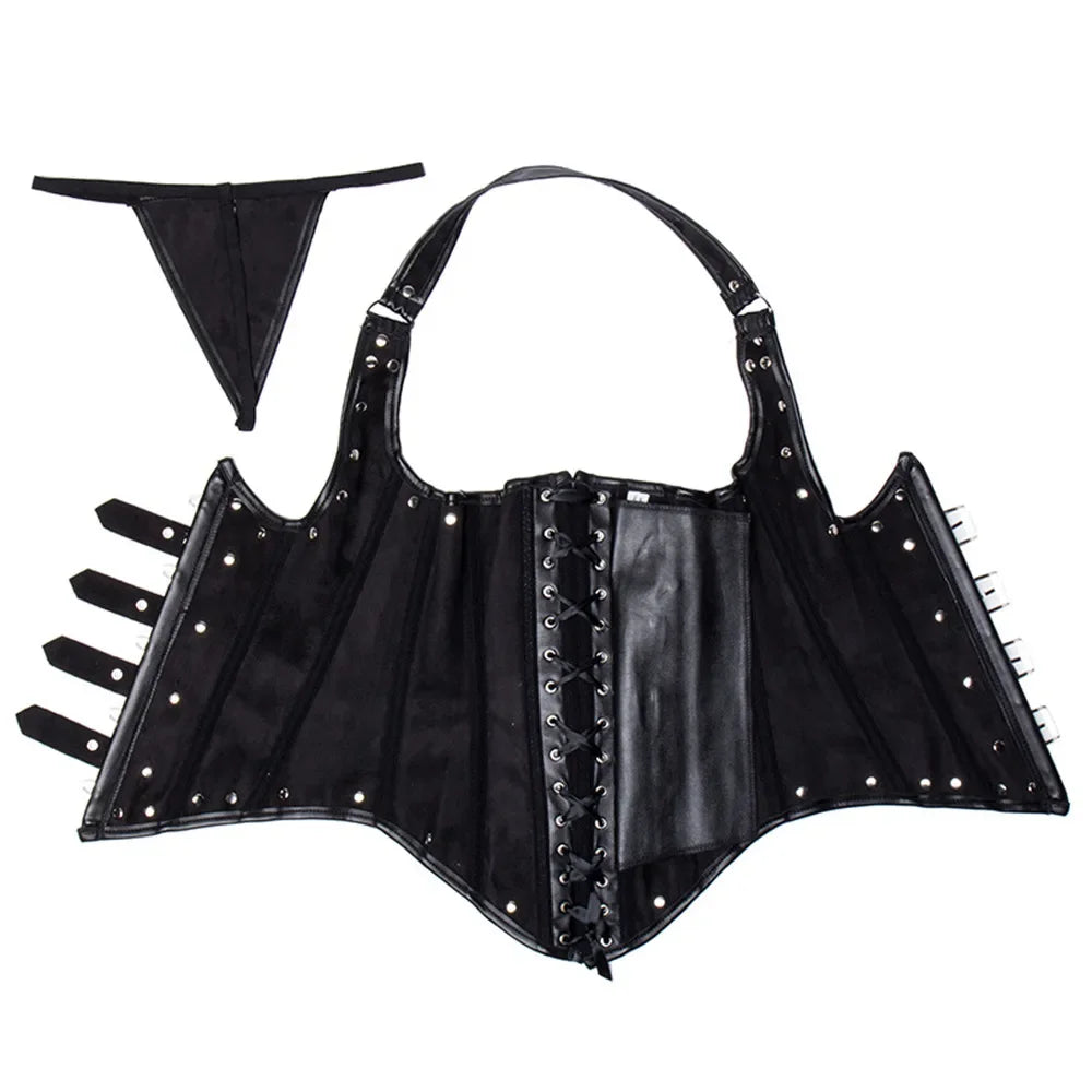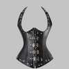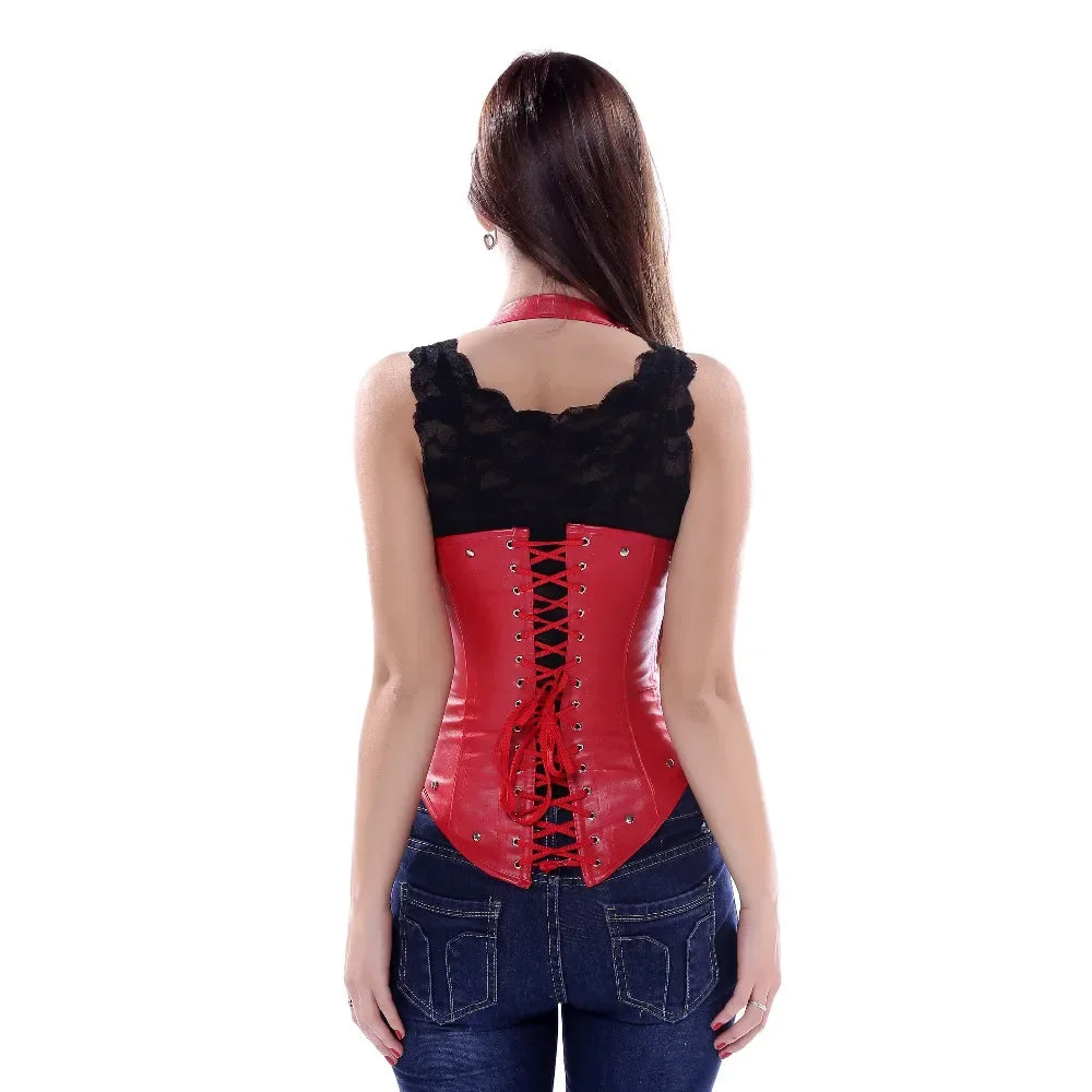 Červený korzet z ekologické kůže s přezkami – dámský punk rock styl černý