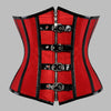 Červený punk rock korzet s černými koženými pásky