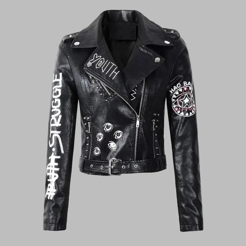 Dámská černá punková goth kožená bunda s cvočky a nápisy Grunge Retry Zobrazit moznosti