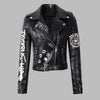 Černá kožená punková goth bunda s cvočky a nápisy Grunge Dámská Retry