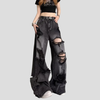 Spodnie Jeansowe Grunge Czarne Poszarpane Oversize Damskie