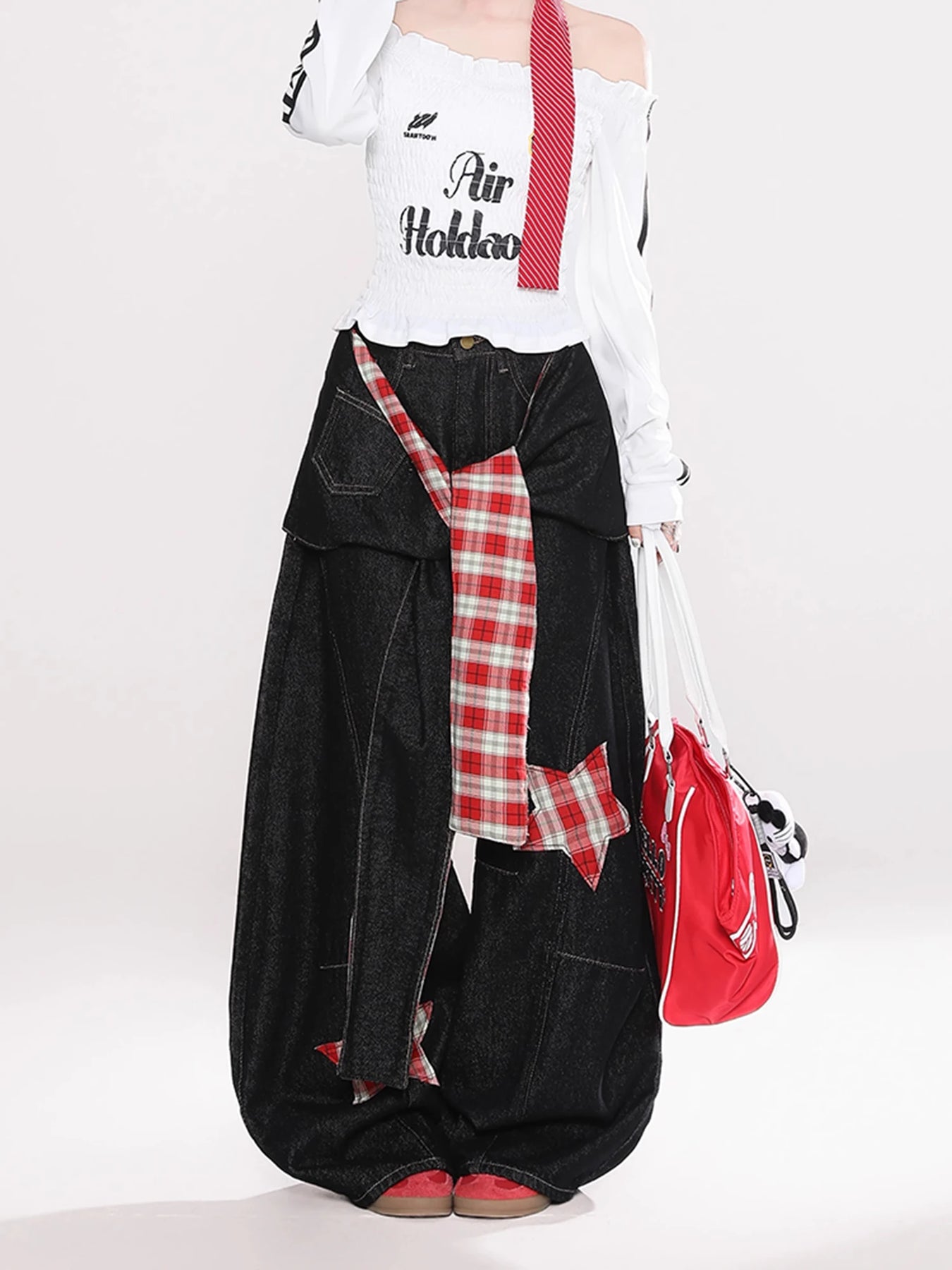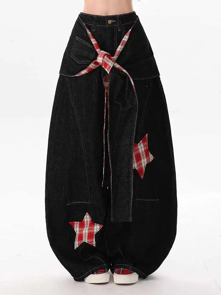 Spodnie Szerokie Punk Czarne Długie z Gwiazdami Damskie Oversize