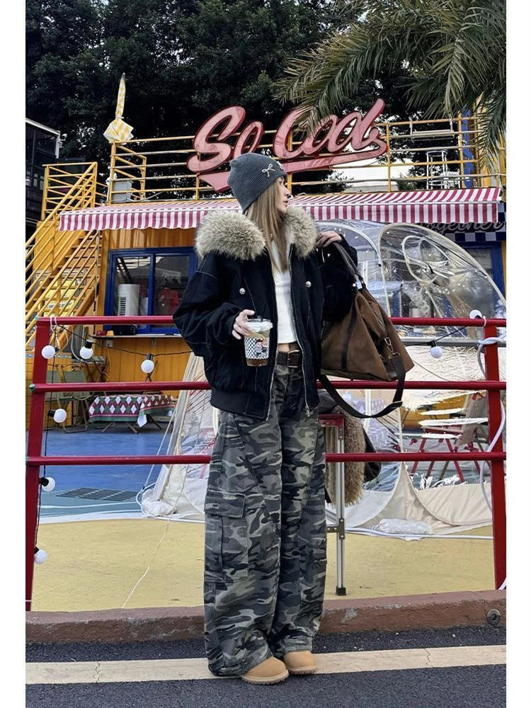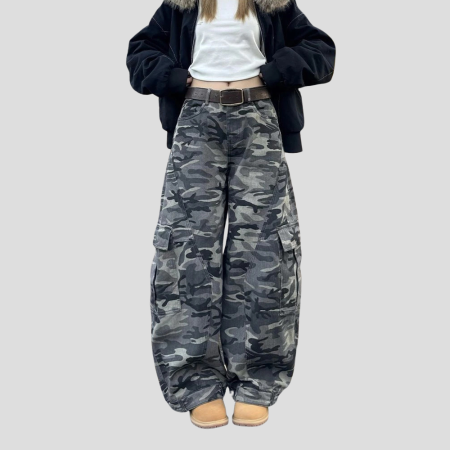 Dámské maskáčové cargo kalhoty oversize s kapsami