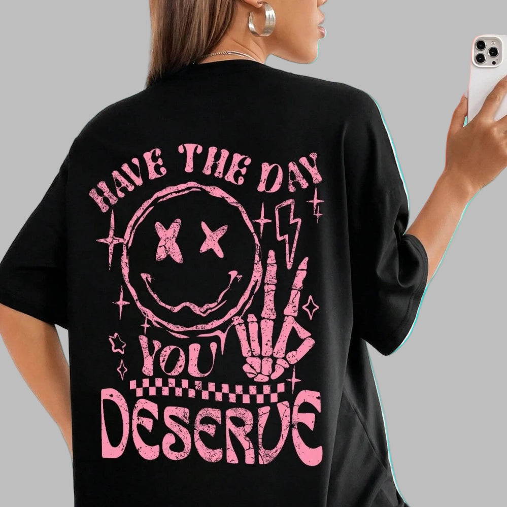 Dámské oversize tričko Grunge Rock s růžovým potiskem Smiley Zobrazit moznosti