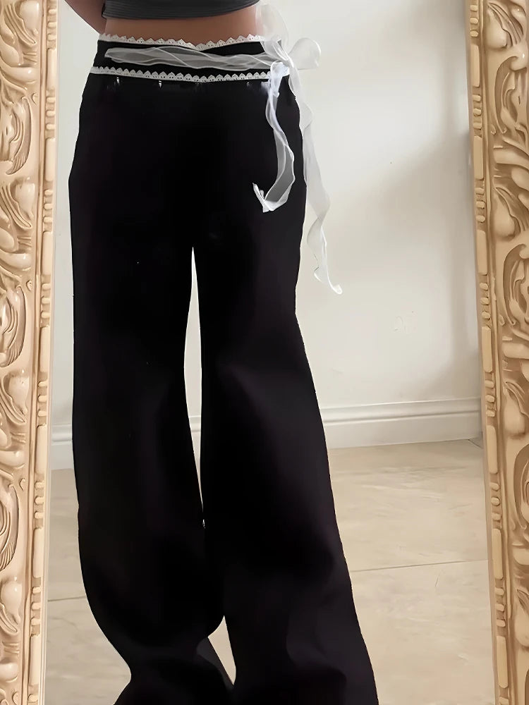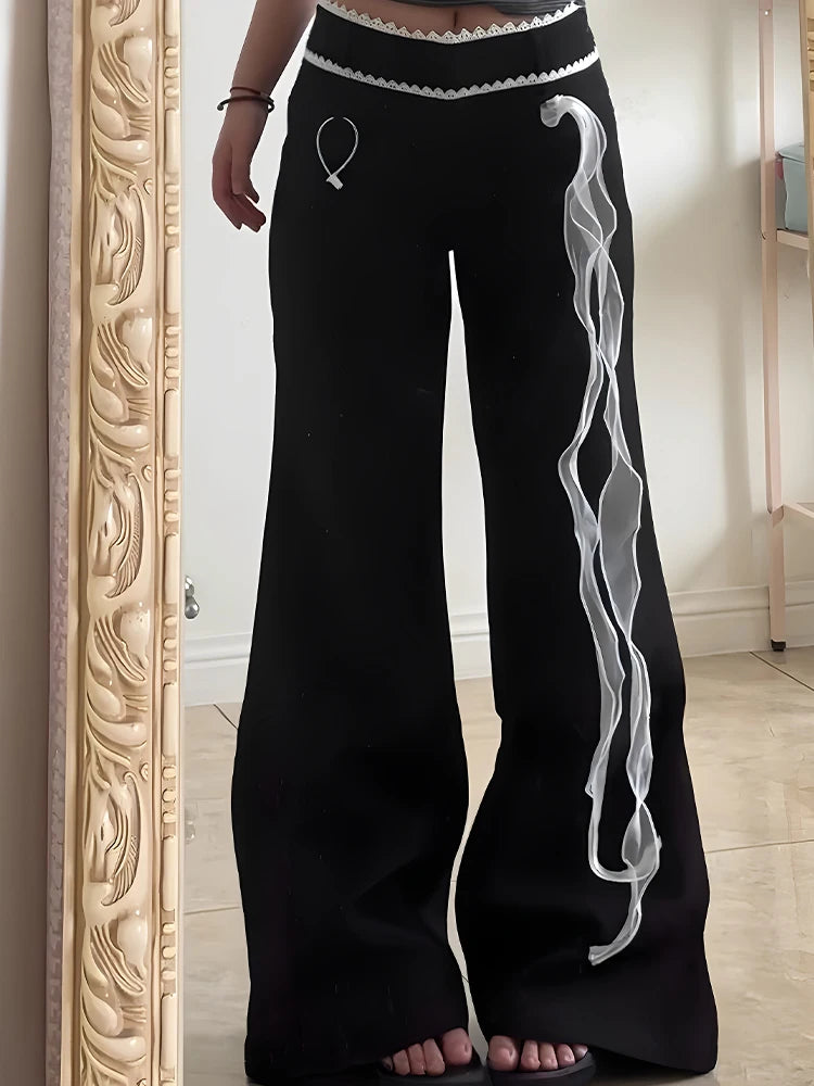 Spodnie Dzwony Punk Dym Nadruk Rozszerzane Damskie