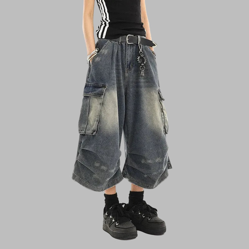 Dámské široké krátké cargo džíny ve stylu grunge