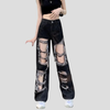 Dámské široké roztrhané džíny ve stylu grunge punk