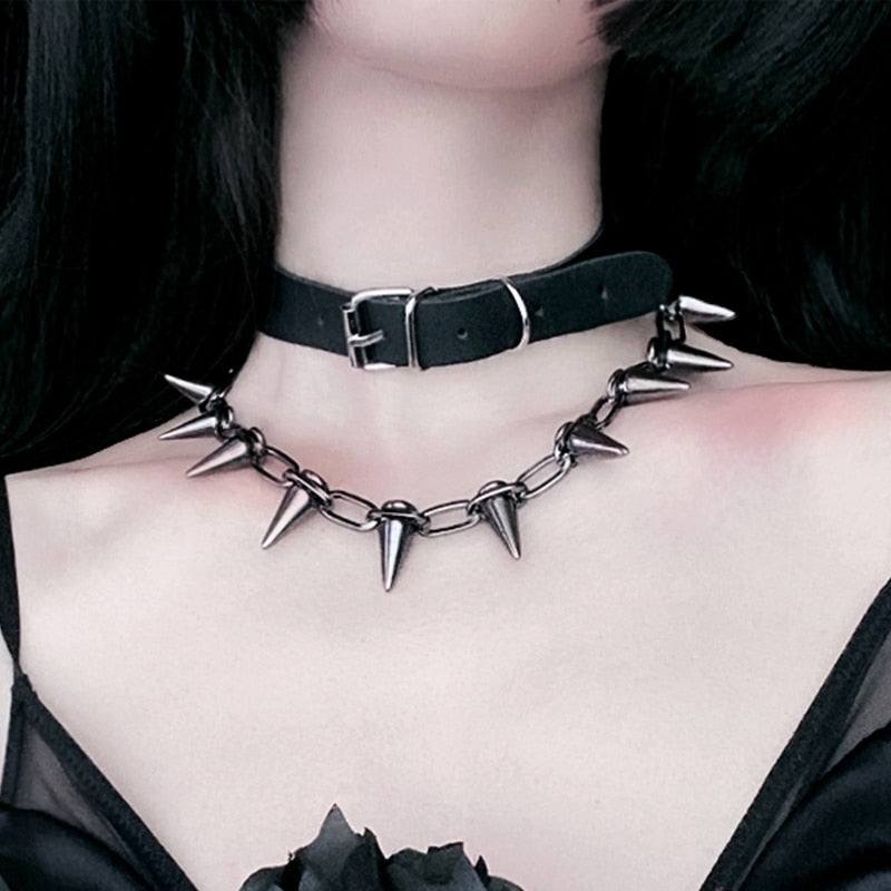 Dámský gotický náhrdelník s hrotem veganská kůže 35 cm