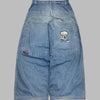 Dlouhá modrá džínová sukně s potiskem ve stylu grunge XXL
