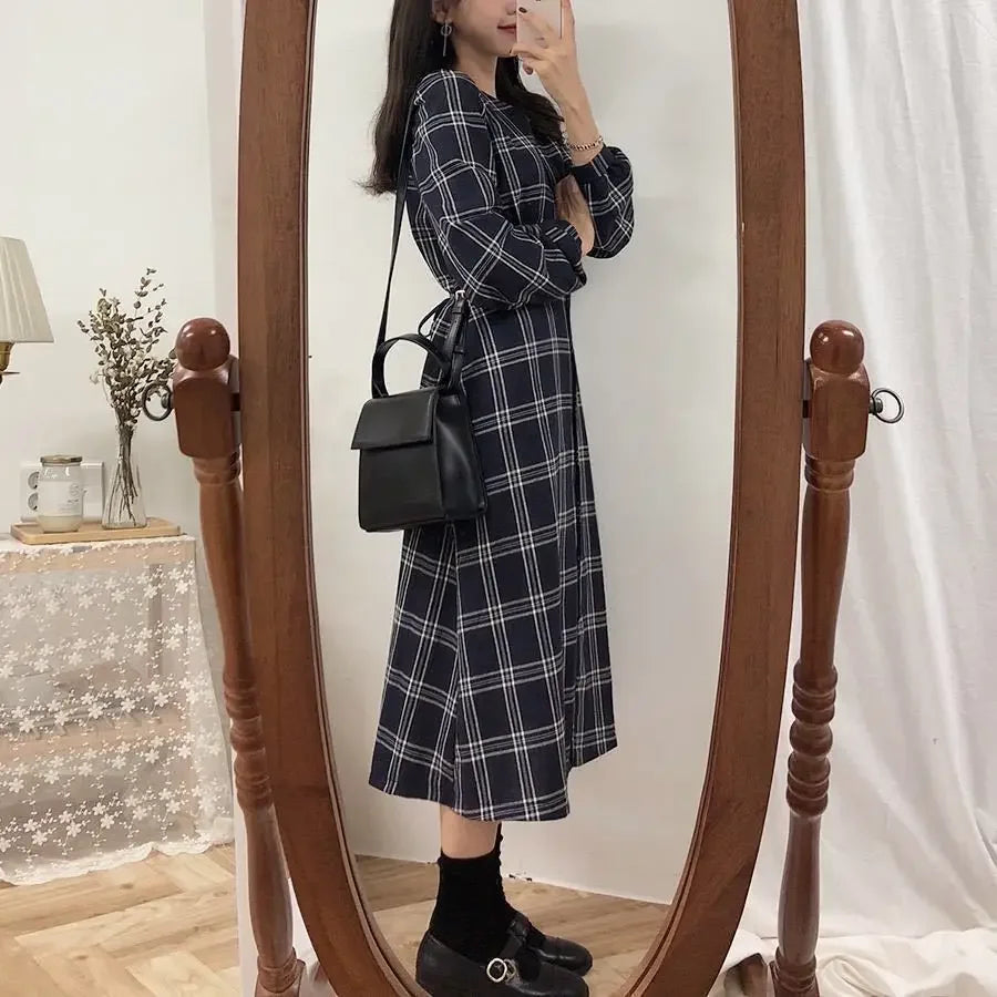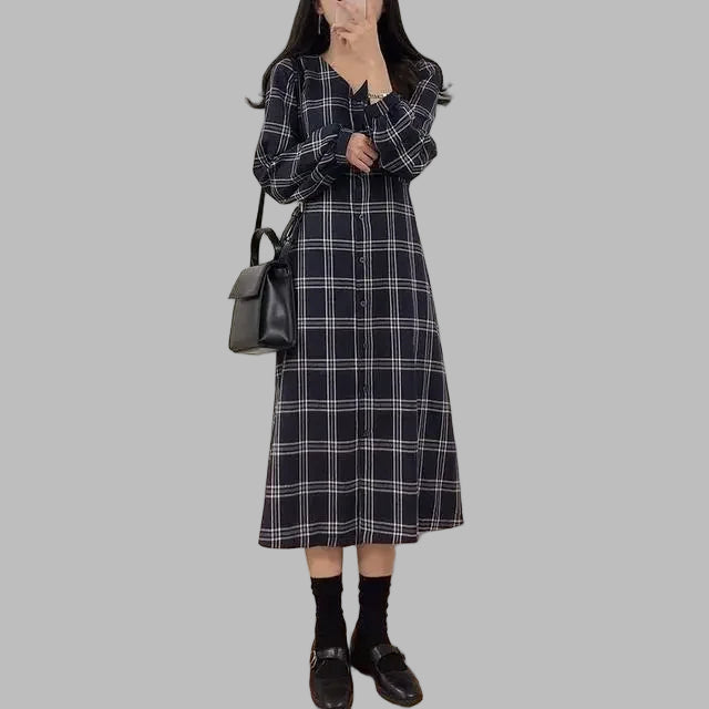 Dlouhé černé punkové šaty s rukávy v kostkovaném vzoru