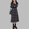 Černé punkové kostkované dlouhé šaty s rukávy XXL