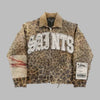 Džínová bunda Grunge Rock Metal s leopardím vzorem a nápisy
