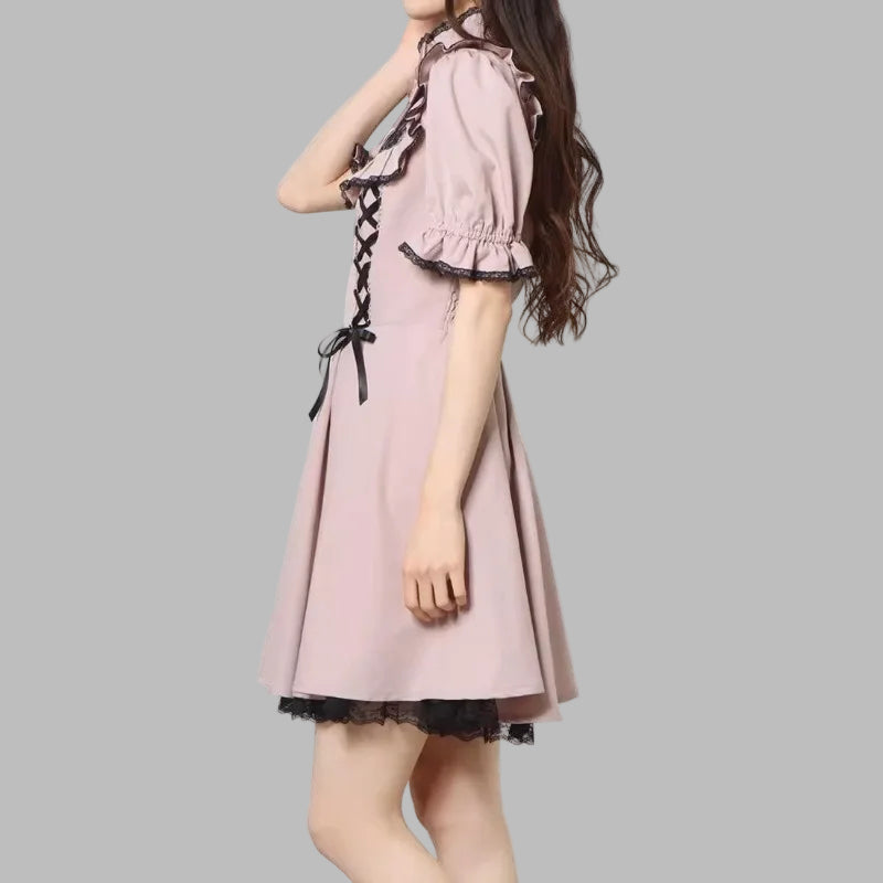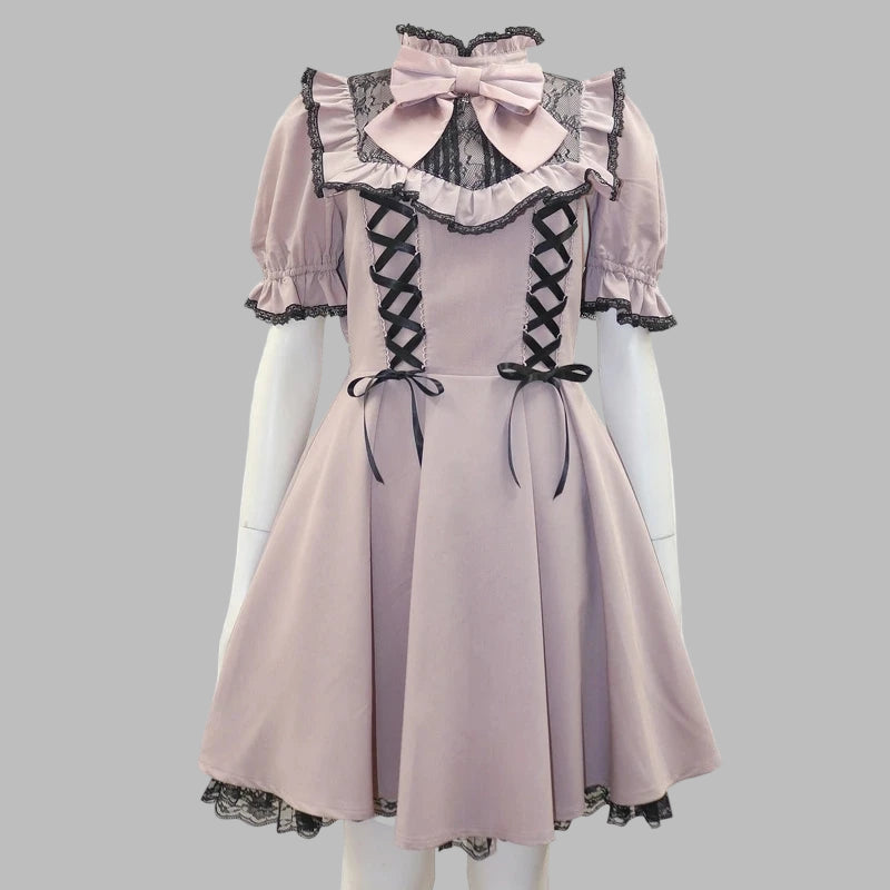 Fialové punk rock šaty s dvojitým šněrováním a mašlemi