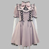Fialové punk rock šaty s dvojitým šněrováním a mašlemi L