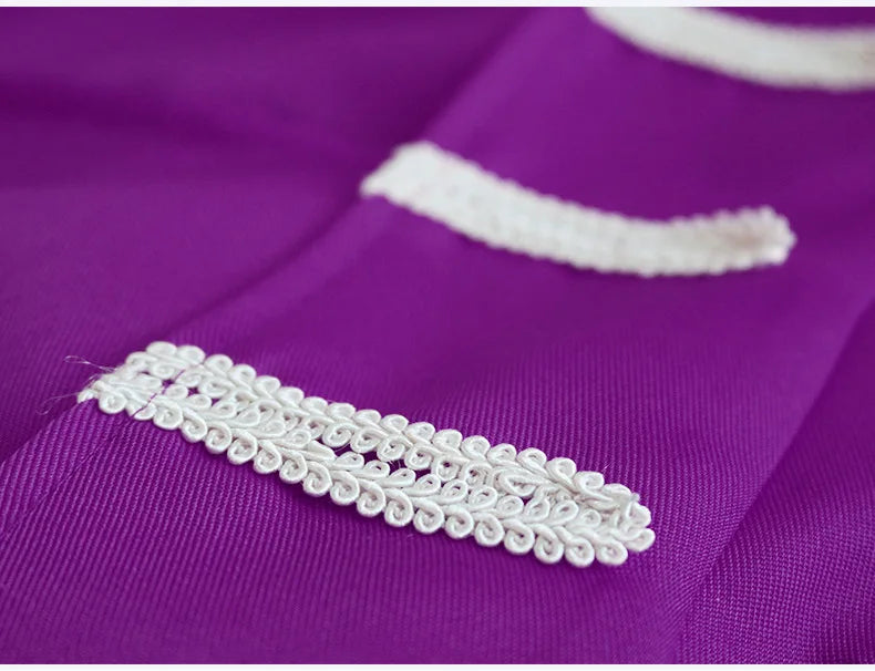 Fialový pánský steampunkový kabát s bílými ozdobnými šňůrami