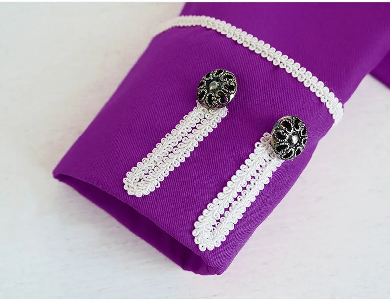 Pánský fialový steampunkový kabát s bílými ozdobnými šňůrami
