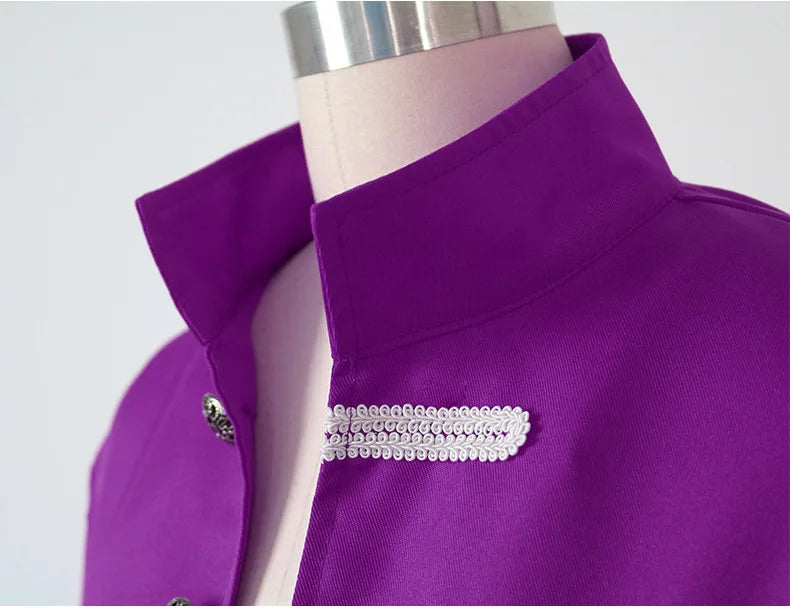 Fialový pánský steampunkový kabát s bílými ozdobnými šňůrami Zobrazit moznosti