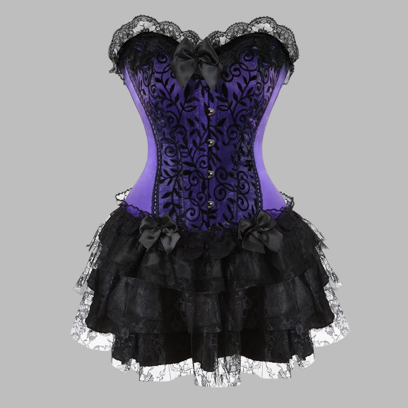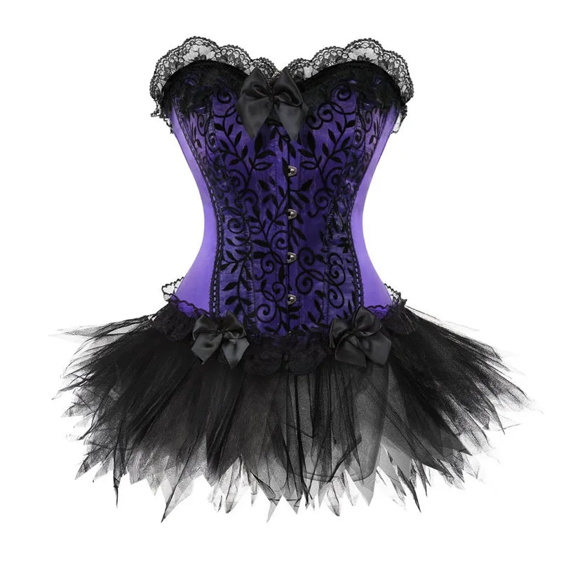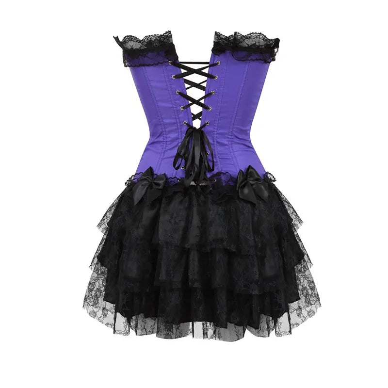 Fialový punk rock korzet s krajkou a černou sukní 6XL