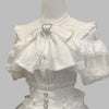 Gotická Kawaii Lolita bílá halenka s krajkou, mašlí a korzetovým páskem