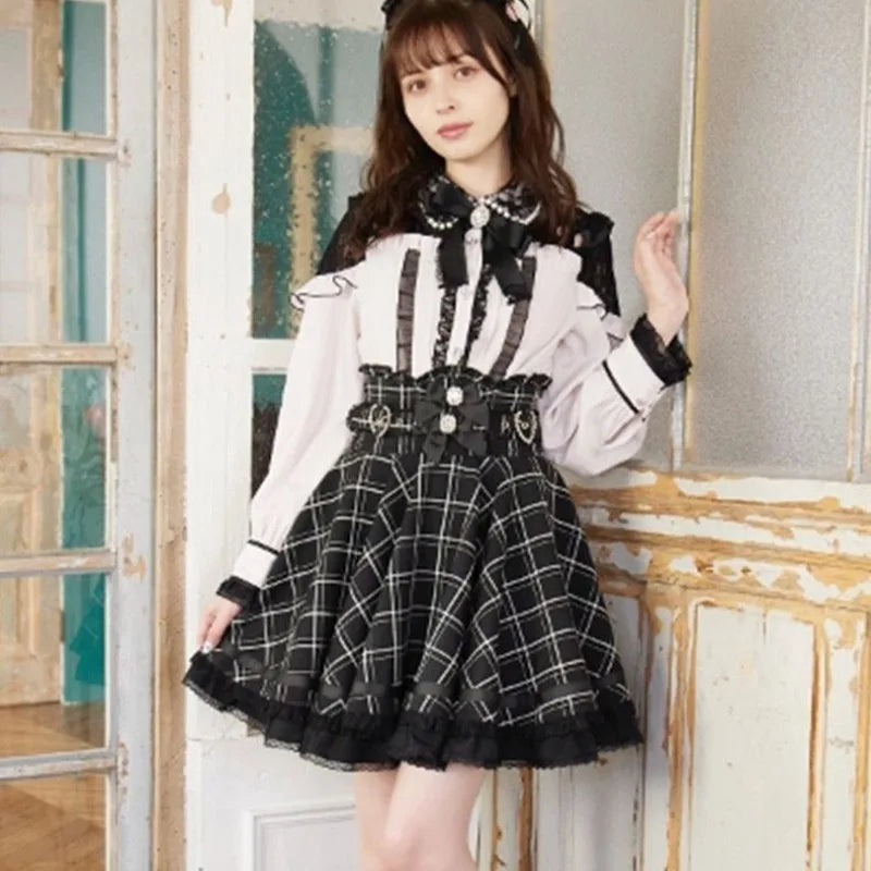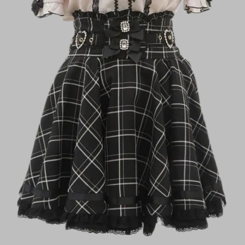 Gotická kostkovaná sukně Punk Rock s mašlí L