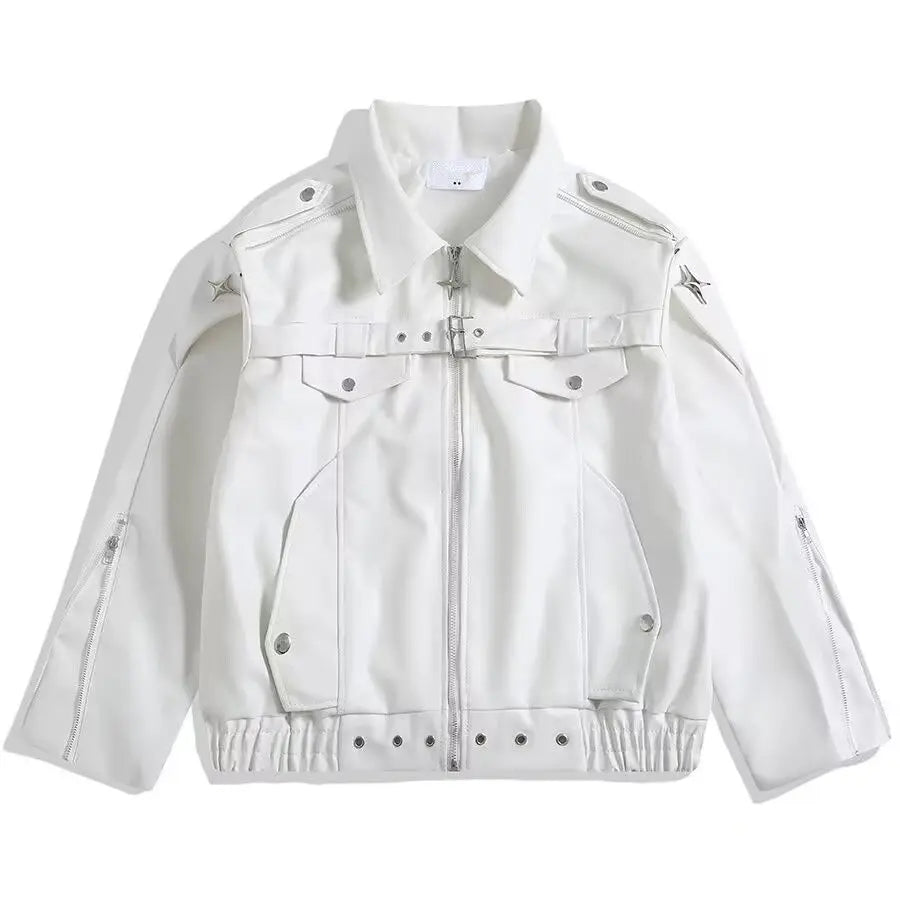 Bílý gotický kožený kabát v korejském stylu