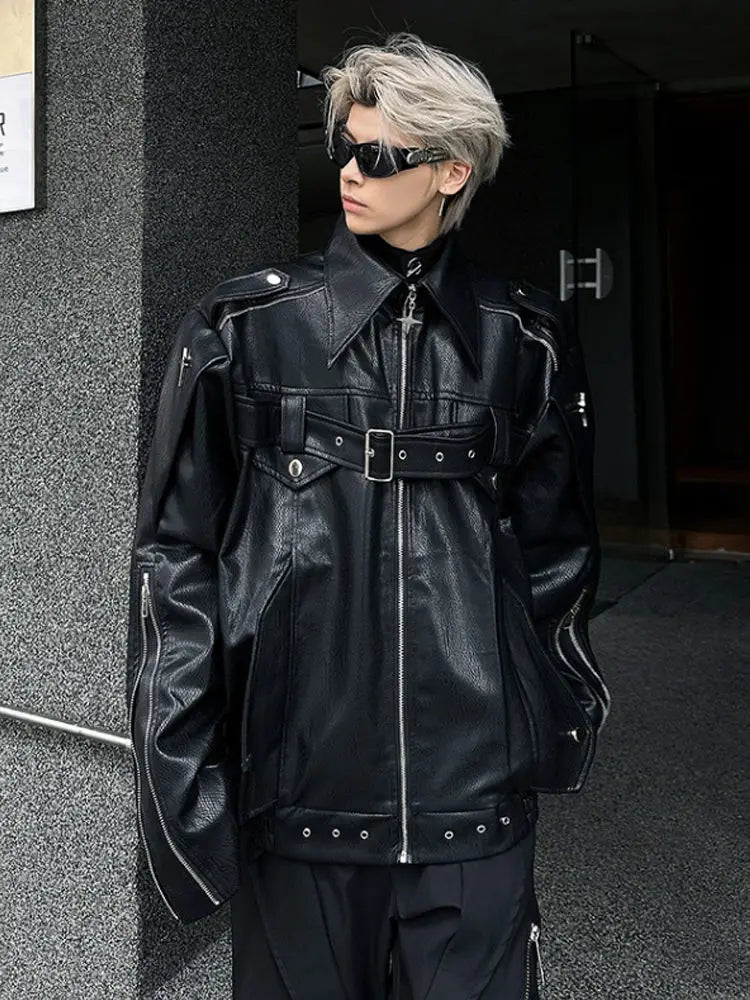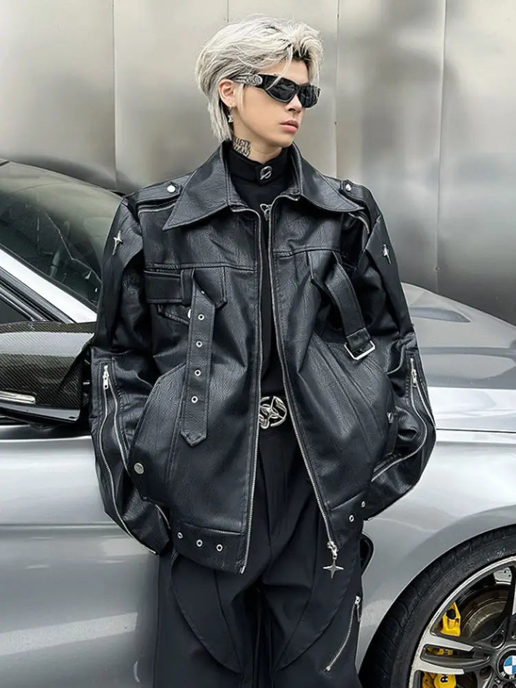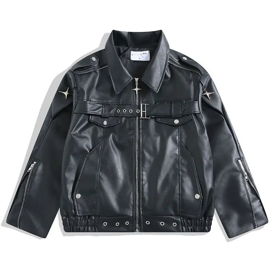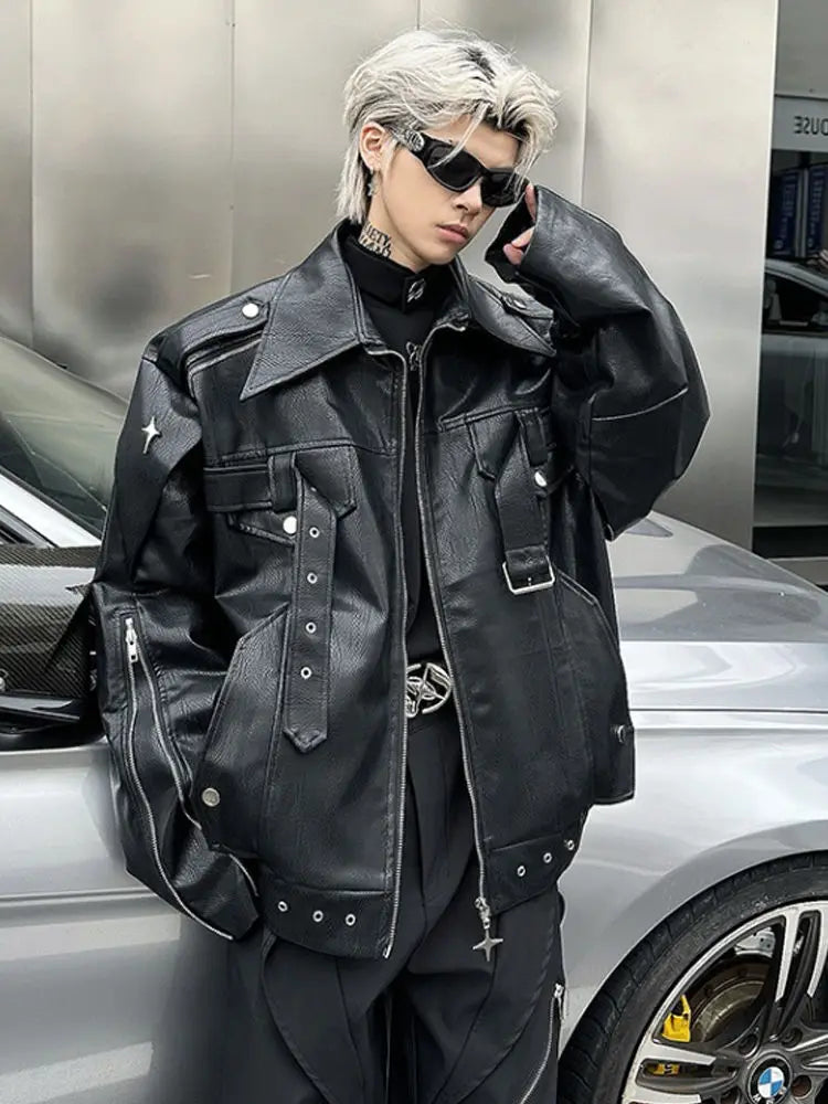 Vsaďte na výrazný a odvážný styl s touto pánskou bundou z ekokůže – ideální na podzim. Díky praktickým kapsám, volnému střihu a motocyklovému stylu inspirovanému trendem Y2K se skvěle hodí jak pro každodenní nošení, tak pro městské streetwearové stylizace.