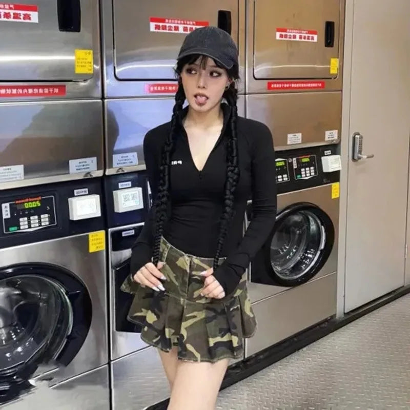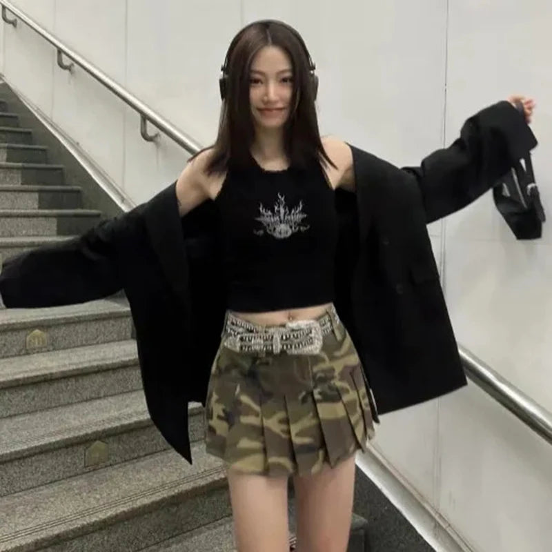 Gotická Mini Sukně Maskáčová - Alternativní Plisovaná Sukně