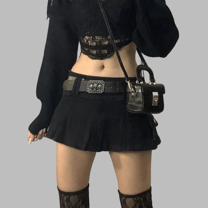 Gotická plisovaná mini sukně punk s kovovou aplikací
