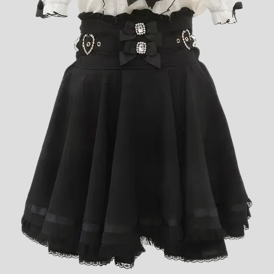 Gotycka Spódnica Jirai Kei Steampunk z Gorsetowym Pasem i Kokardą