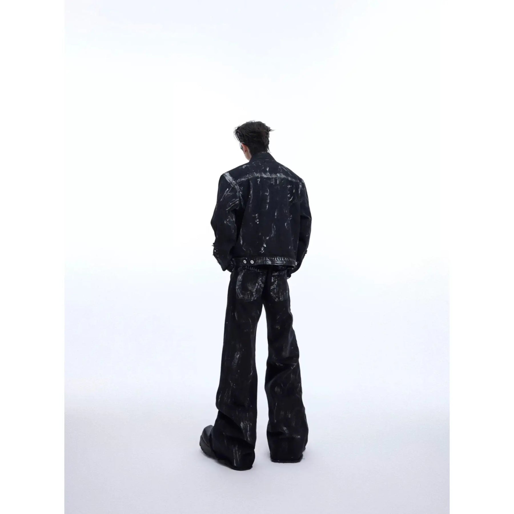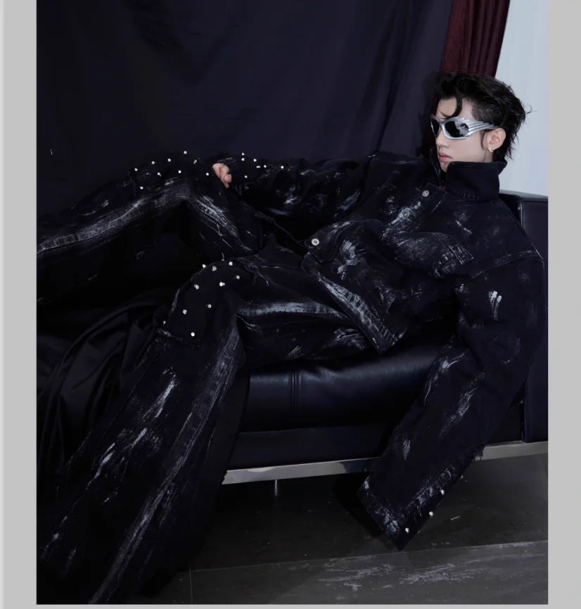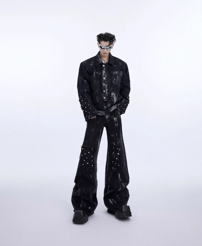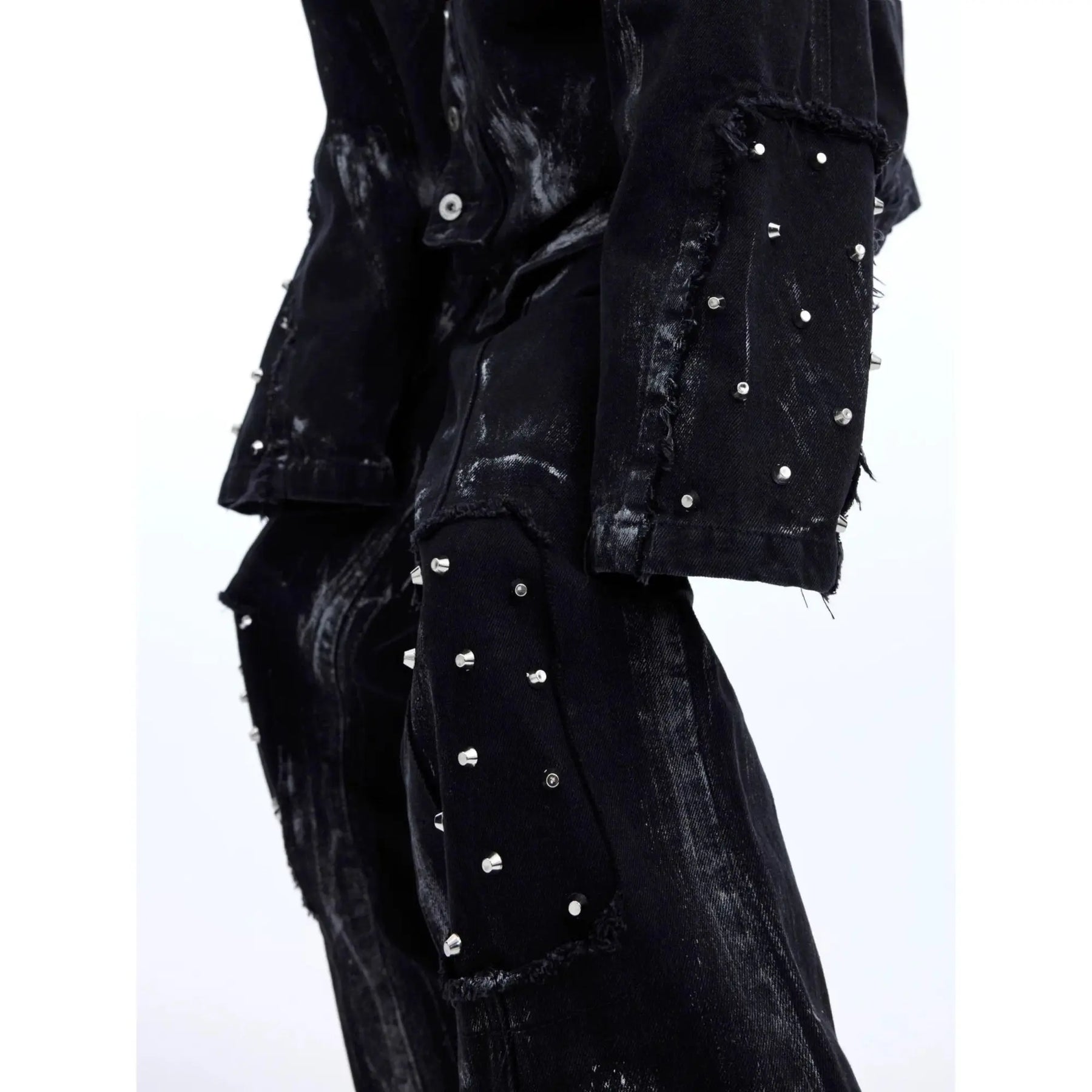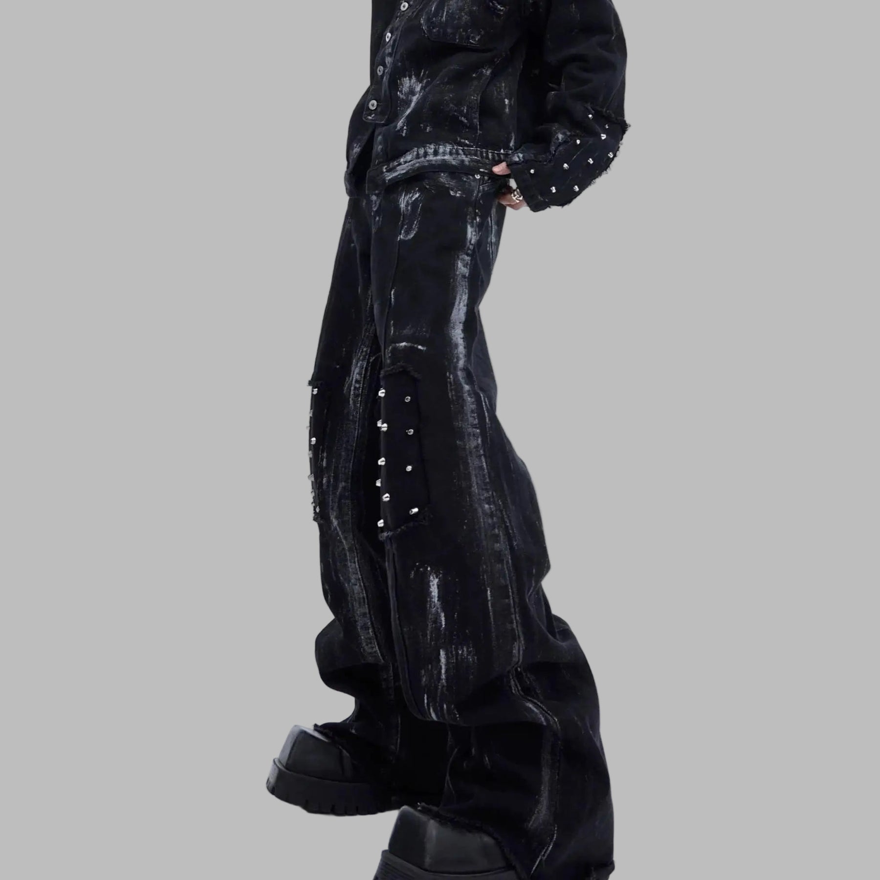 Gotické černé oversize kalhoty s cvočky a dírami ve stylu grunge vintage