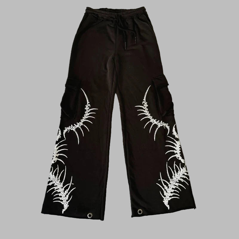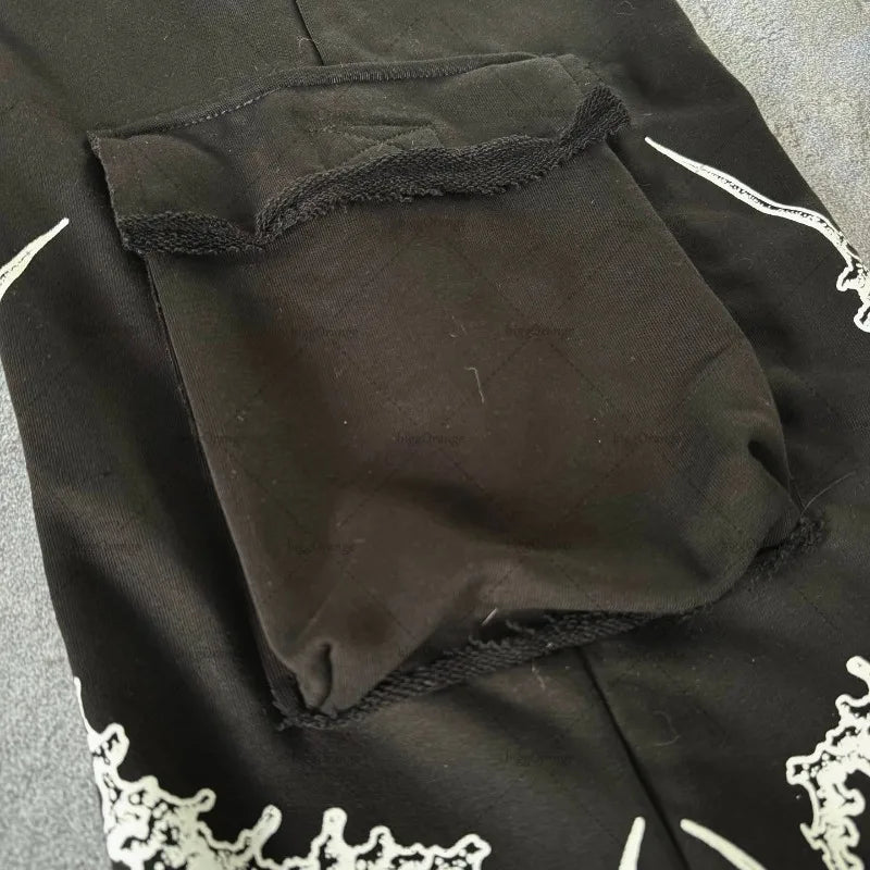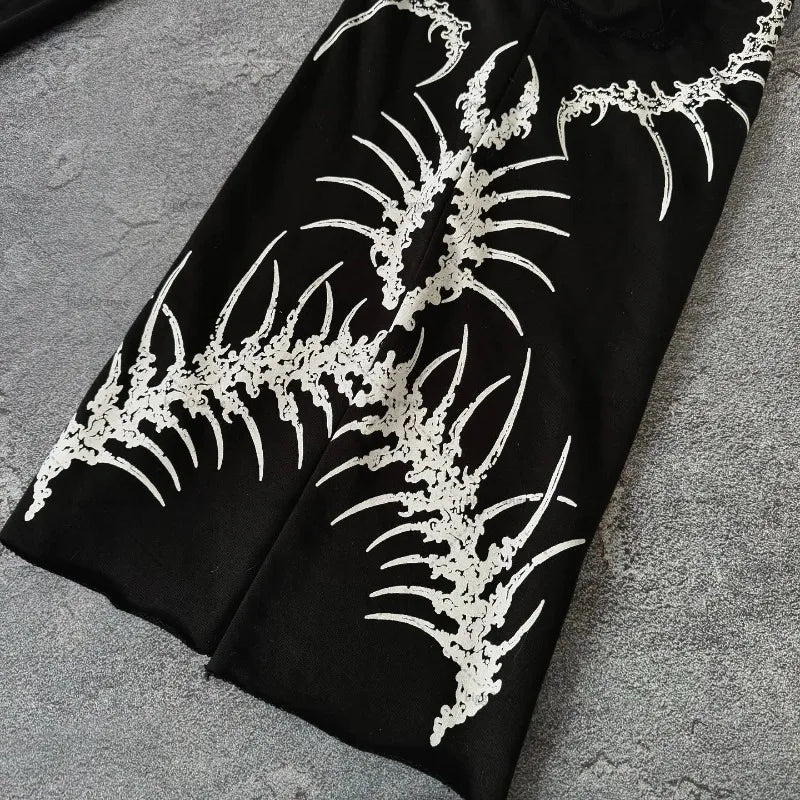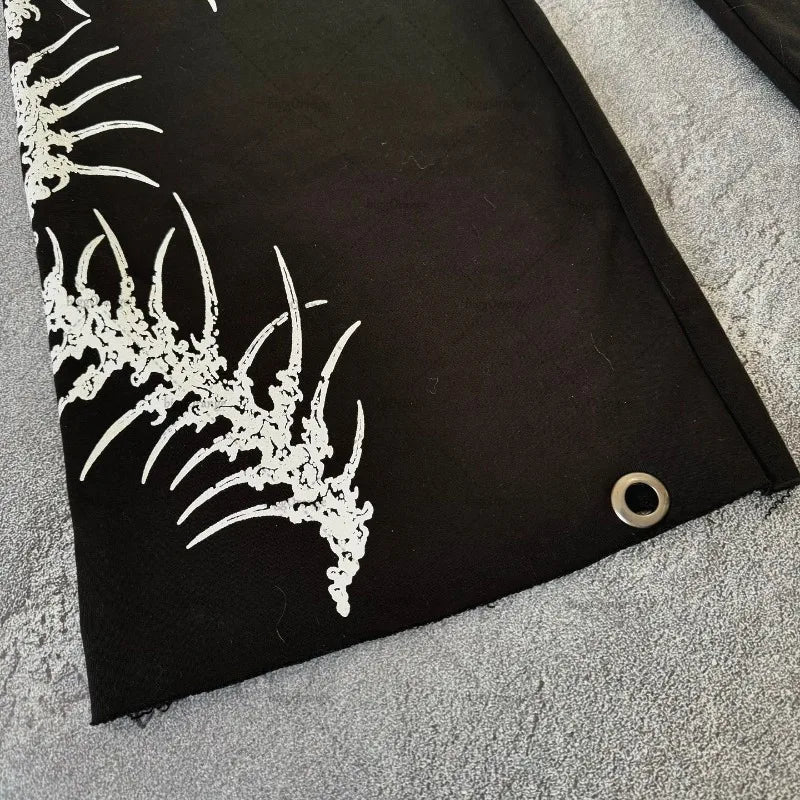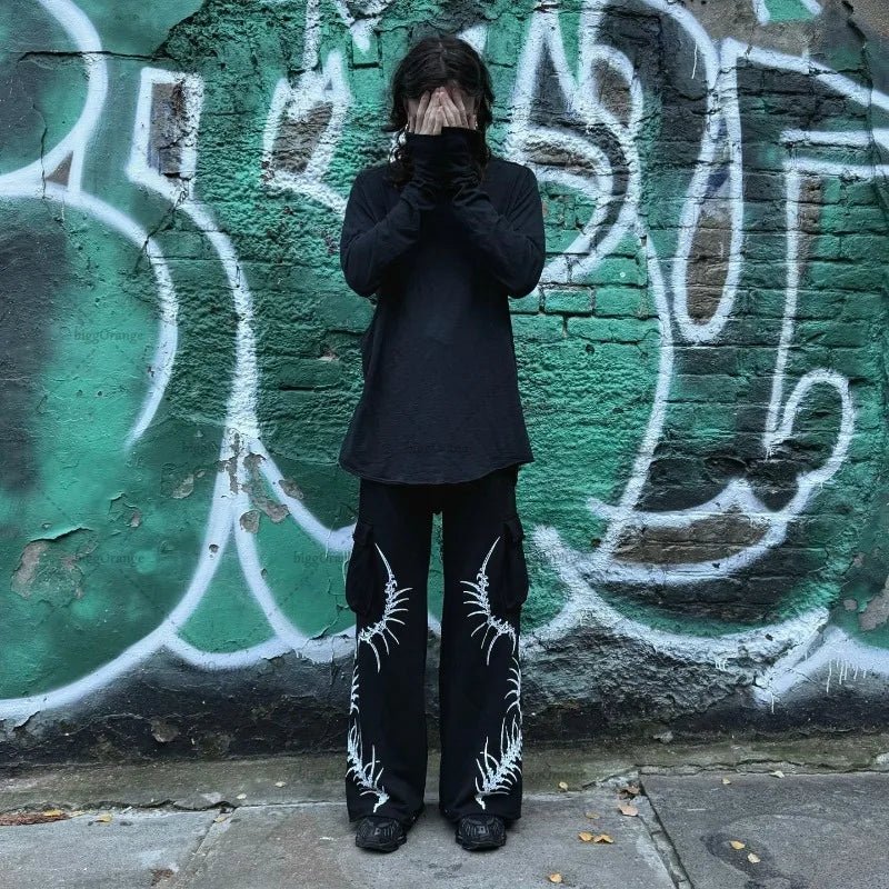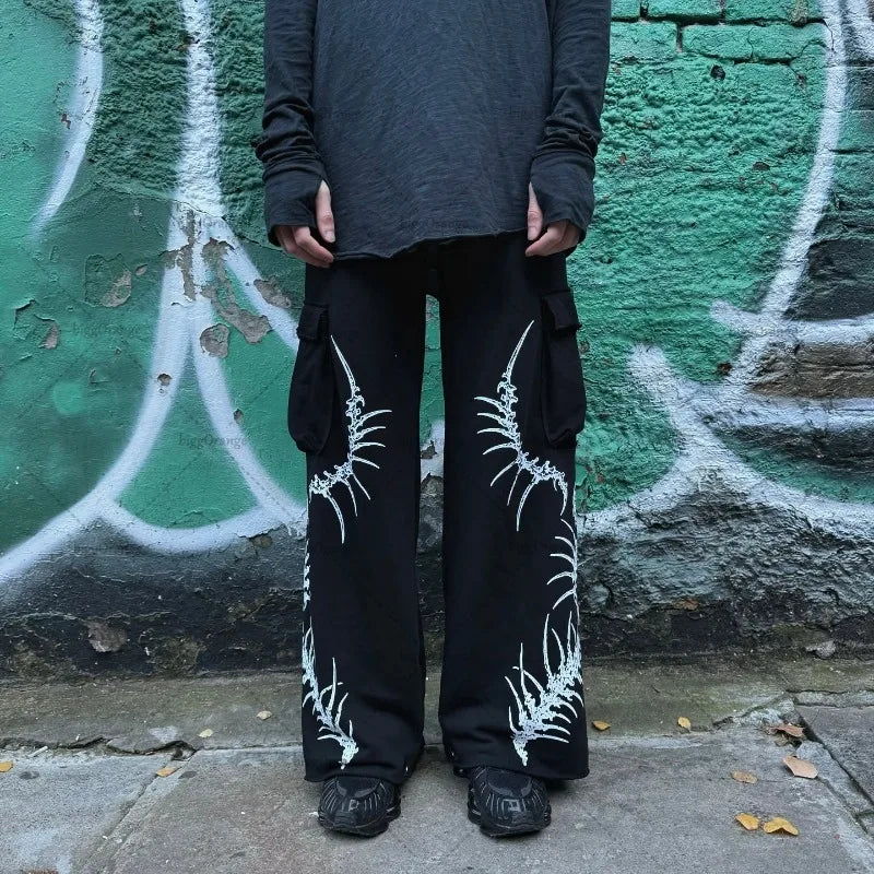 Gotické grunge kalhoty s potiskem kostry darkwear