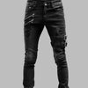 Gotické rockové džíny s roztrháním, zipy a přezkami černé pánské