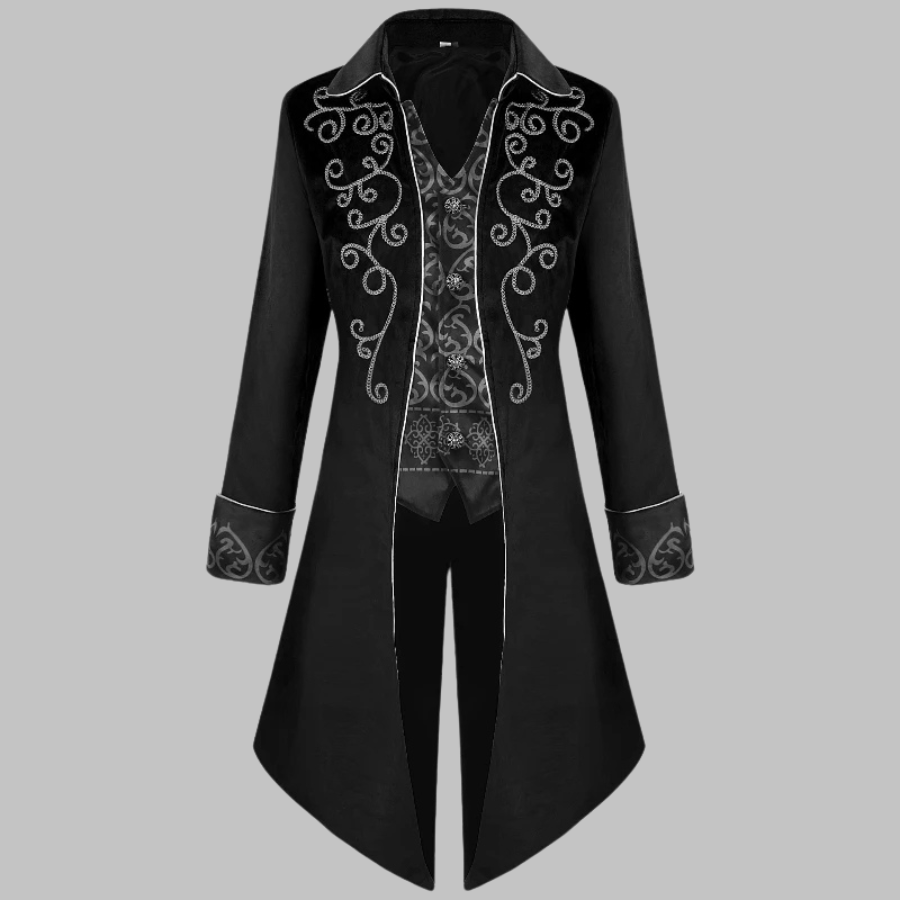 Gotický pánský kabát ve středověkém stylu se stříbrnými ozdobami