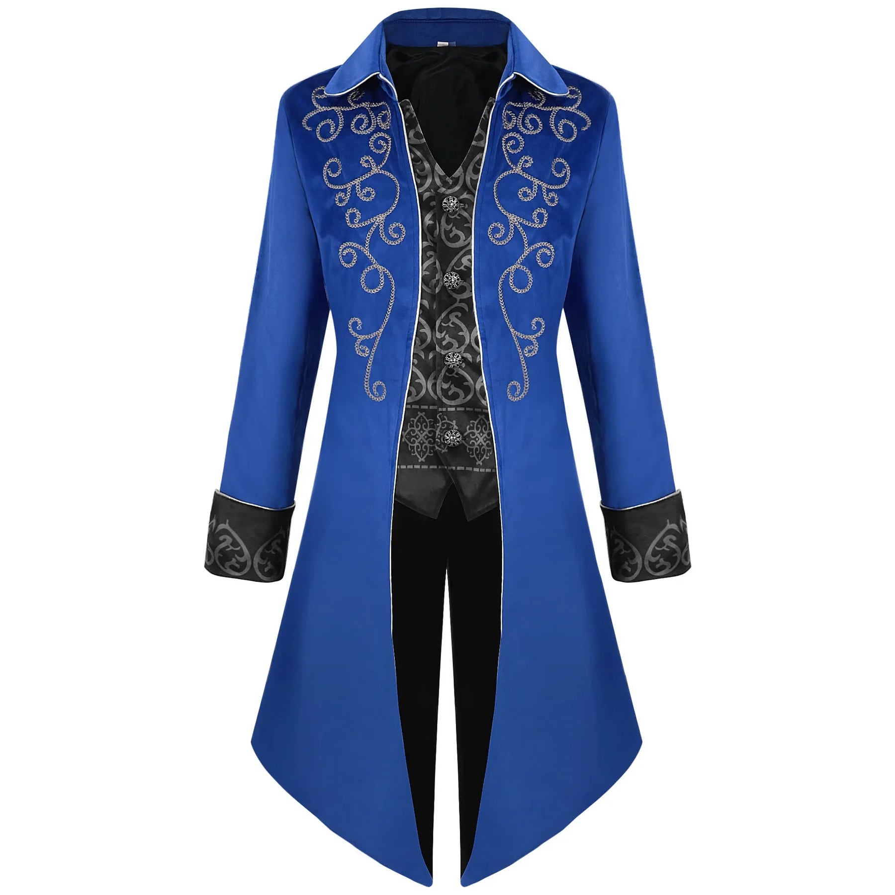 Gotický pánský kabát s modrými a stříbrnými ozdobami ve středověkém stylu