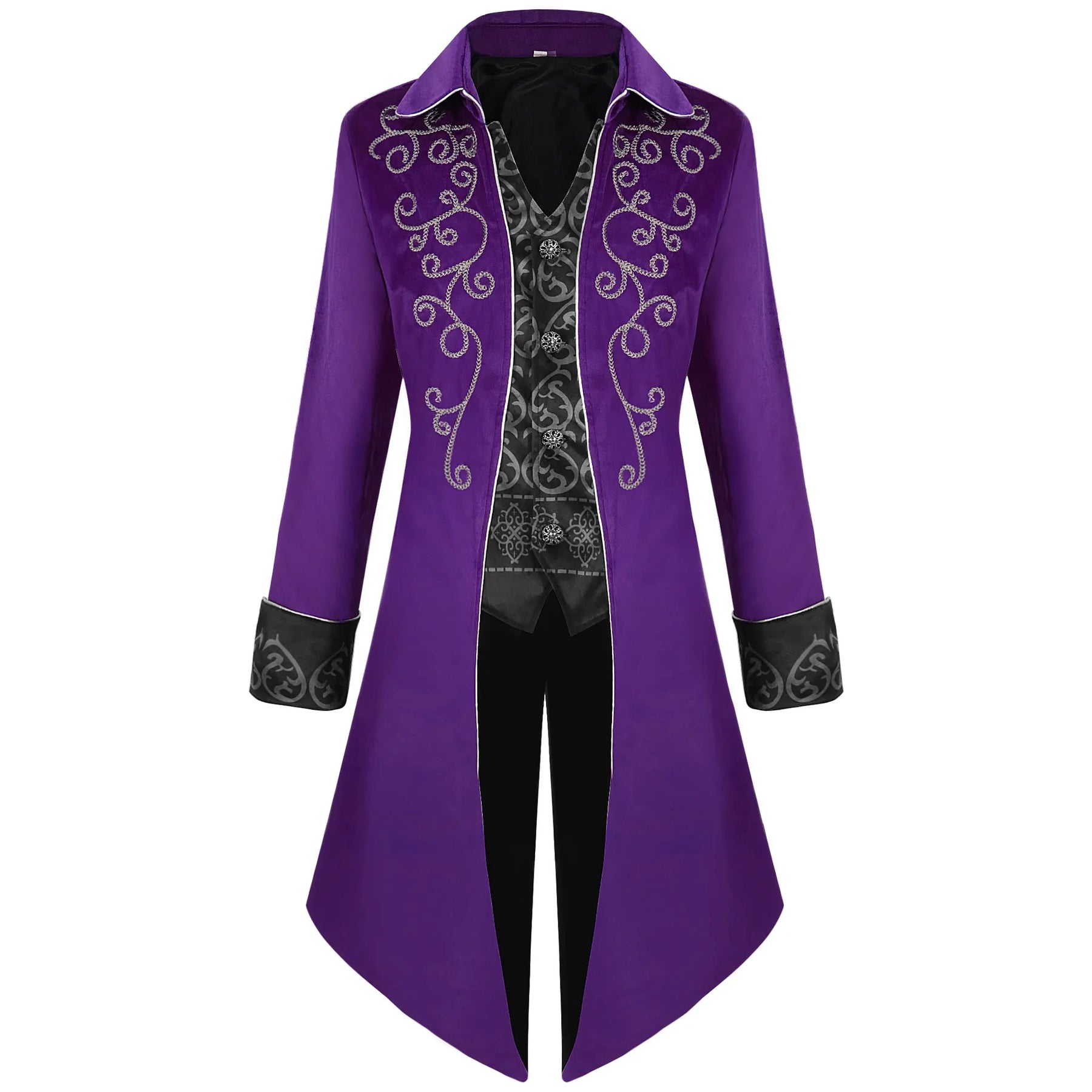 Gotický pánský středověký kabát s fialovými a stříbrnými ozdobami