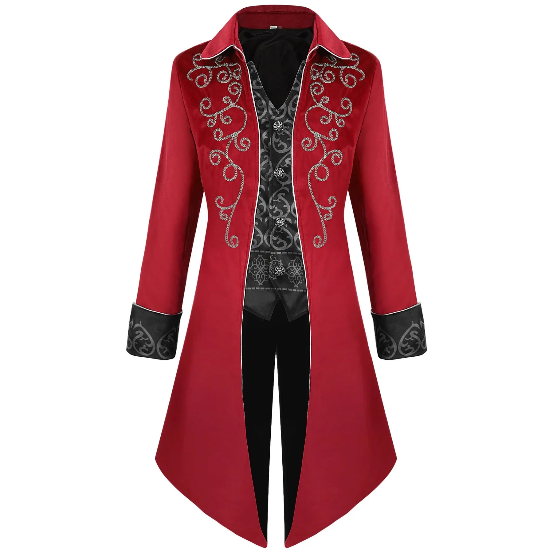 Gotický pánský kabát středověký s červenými a stříbrnými ozdobami