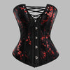 Gotický steampunk korzet černý s červenými květy a šněrováním 6XL