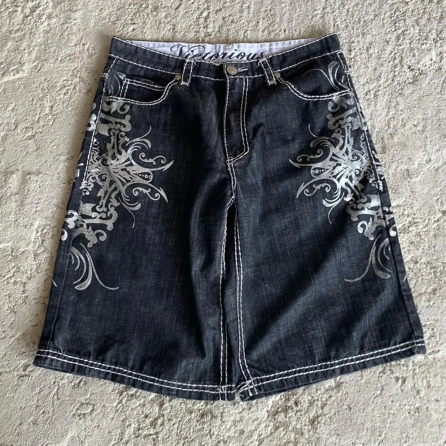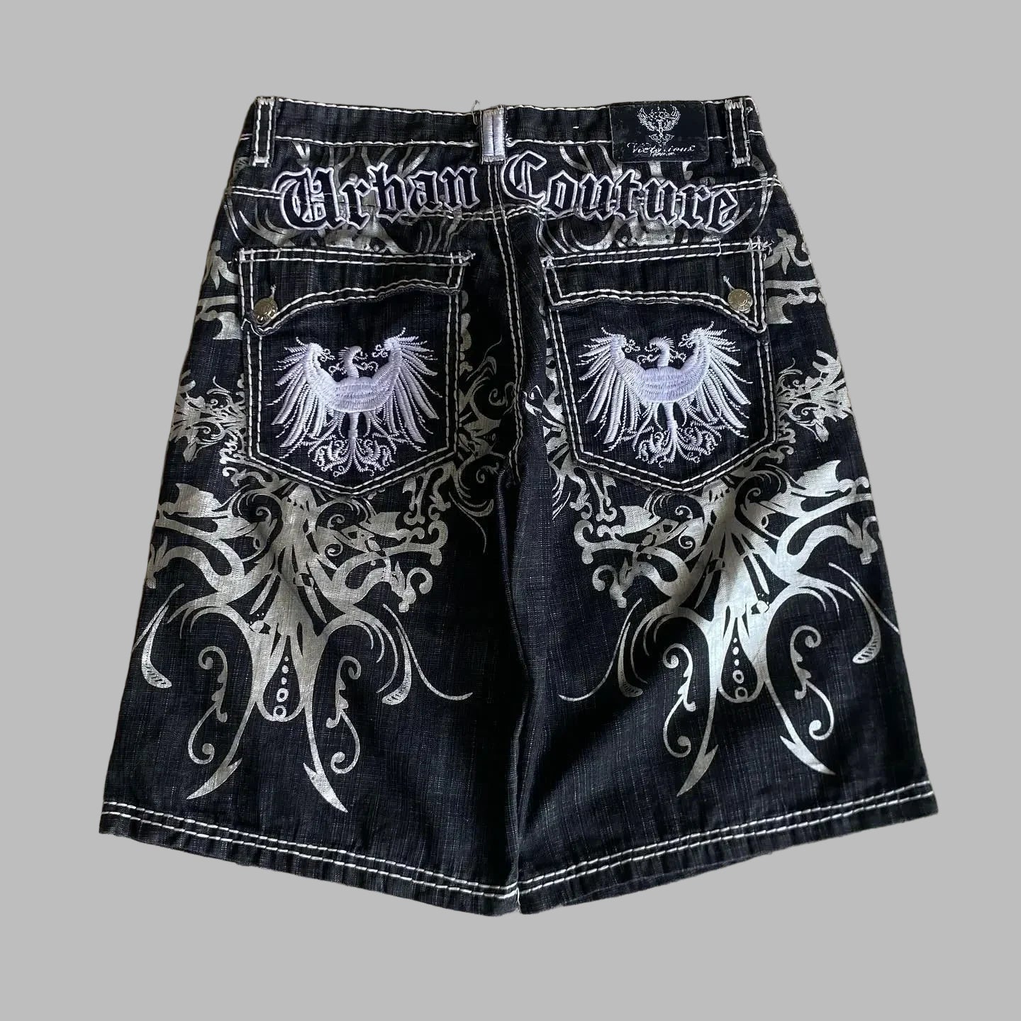 Grunge džínové šortky s orly a tribal vzory metalového stylu