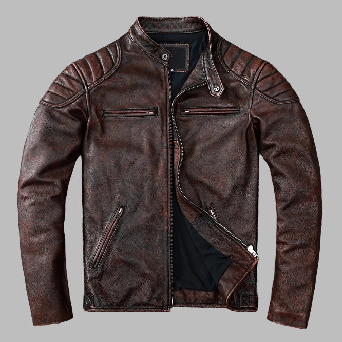 Hnědá kožená vintage bunda Rock s prošíváním