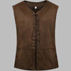 Hnědá semišová steampunková vesta bez rukávů se šněrováním