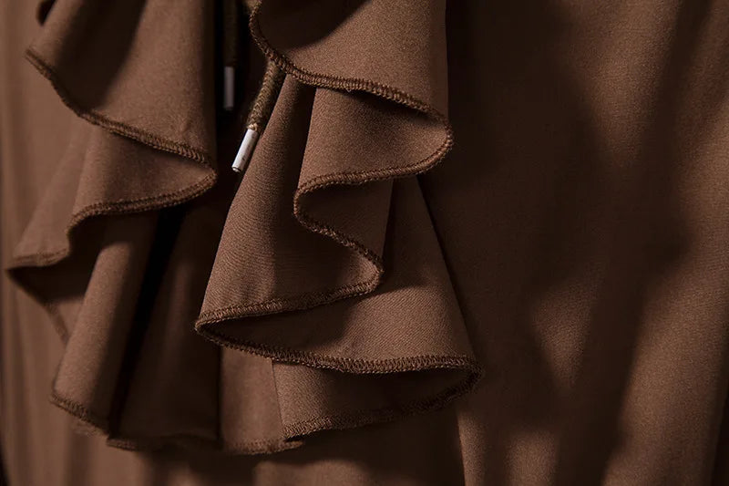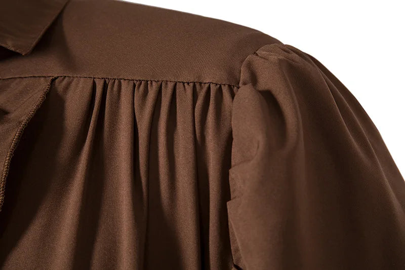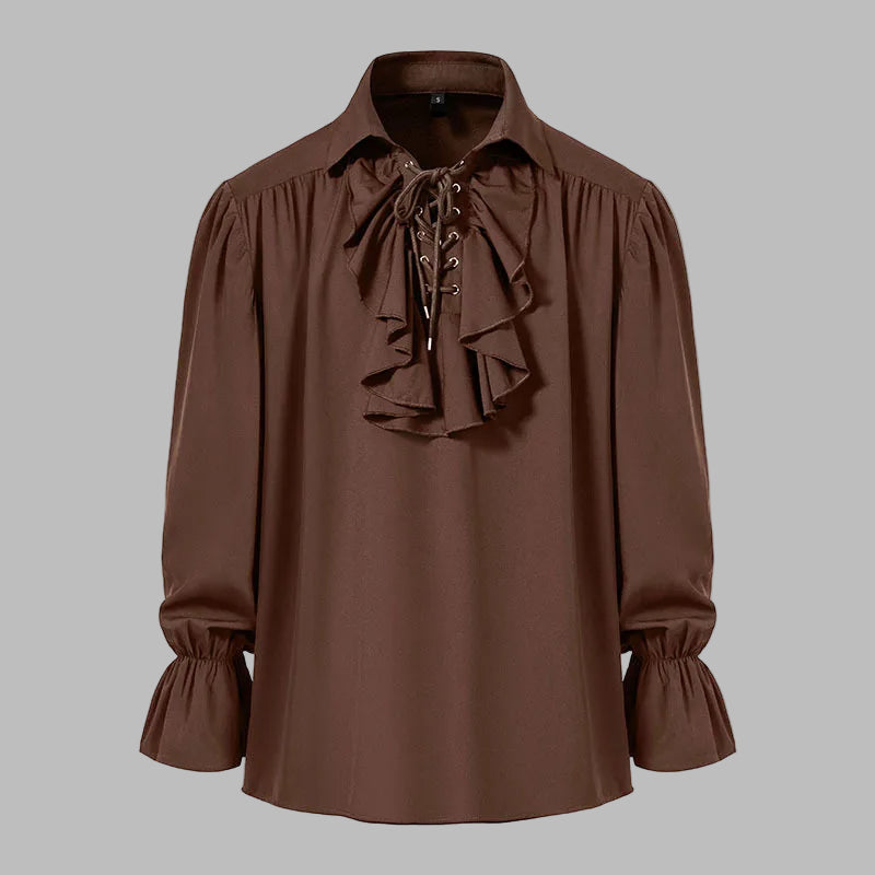 Hnědá steampunková košile s volánkem a retro šněrováním