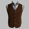 Hnědá steampunková vesta s klasickým střihem měděné knoflíky