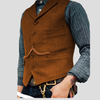 Hnědá vesta Rock s vintage řetízkem, vzor rybí kostra, zakončení