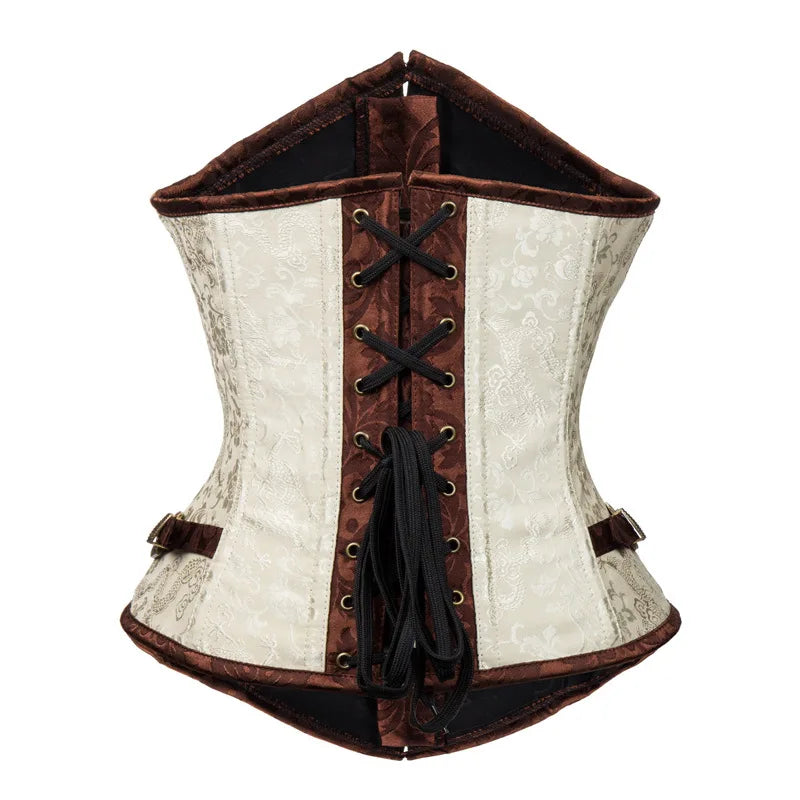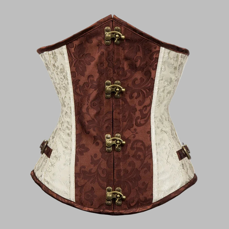 Hnědo-krémový retro steampunk korzet s kovovými přezkami