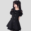 Jirai Kei Černé šaty s volánky a srdcovými knoflíky