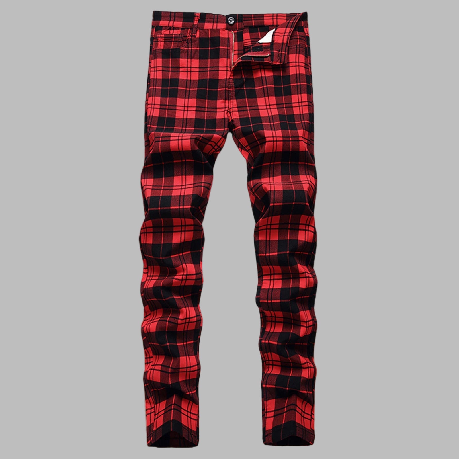Kostkované červeno-černé rockové vintage kalhoty metal