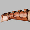 Hnědé kožené steampunk chrániče s mosaznými přezkami