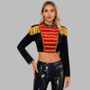 Krátká černo-červená steampunková vojenská bunda s třásněmi